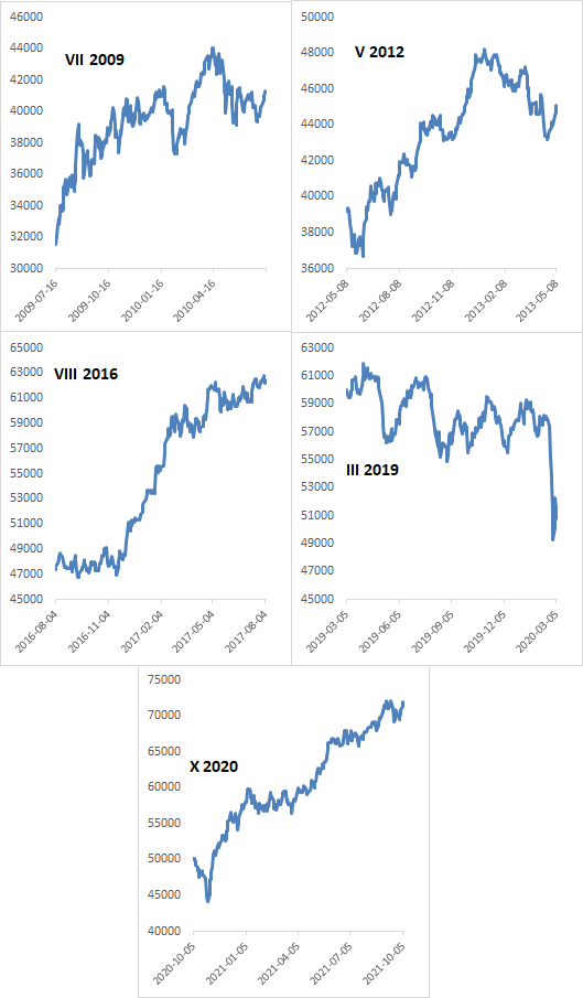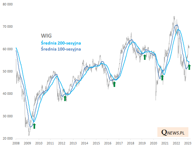 Jeśli pominąć jedyny na przestrzeni ostatnich piętnastu lat (czyli w okresie od globalnego kryzysu finansowego) zupełnie błędny sygnał z początku 2019 roku, to wszystkie pozostałe cztery złote krzyże pojawiające się po dużych ruchach spadkowych były trafną zapowiedzią dalszej zwyżki WIG-u w horyzoncie wielomiesięcznym.