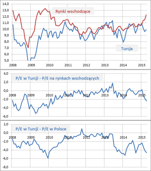 W ostatnich miesiącach Turcja zajmuje drugą pozycję (tuż za Rosją) wśród najtańszych na świecie rynków akcji. Wskaźnik ceny do prognozowanych zysków spółek dla indeksu MSCI Turkey (międzynarodowy odpowiednik lokalnego BIST 100) uporczywie przebywa poniżej granicy 10x, podczas gdy np. na rynkach rozwiniętych, a nawet na GPW, porównywalne wskaźniki są kilkadziesiąt procent wyższe.