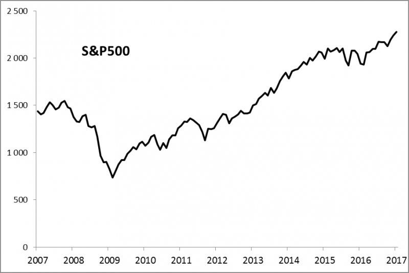 Amerykański indeks akcji kontynuował wybicie z konsolidacji z lat 2015-2016. Dzięki temu wspiął się na nowe historyczne szczyty. Ale tempo zwyżki w styczniu było mało imponujące w porównaniu z polskimi indeksami. S&P500 zyskał 1,8%, zaś WIG - aż 6,7%.