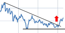 Rys. 1. Wskaźnik siły relatywnej WIG250 (małe spółki na GPW) względem indeksu CRB (surowce)