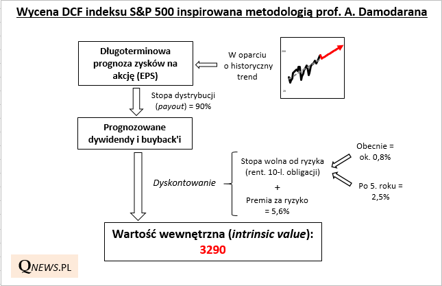 Na sytuację można spojrzeć też w zupełnie inny sposób. Wg naszych wyliczeń opartych na metodologii DCF (zdyskontowanych strumieni pieniężnych) aktualna "wartość wewnętrzna" S&P 500 to niespełna 3300 pkt. O ile zanim doszło do korekty, indeks wydawał się przewartościowany względem tego szacunku, obecnie można mówić o rozsądnym poziomie (chociaż nigdy nie da się wykluczyć, że dojdzie do niedowartościowania - wtedy byłby to impuls do zakupów).