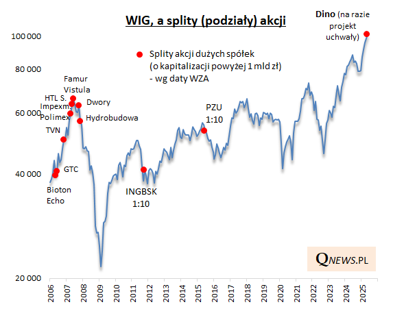 Splity akcji pojawiają się z reguły po silnym, długotrwałym wzroście notowań, a ich celem jest zwiększenie dostępności oraz płynności obrotu na giełdzie. Czy split tak dużej spółki, jak Dino, może stanowić jakiś sygnał odnośnie stanu koniunktury nie tyle w przypadku tej pojedynczej firmy, ale ogólnie całego rynku akcji?