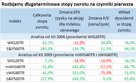 Na koniec podkreślmy ważną kwestię. Nasze długoterminowe rozważania nie mówią nic na temat rozwoju wydarzeń na krótką metę. Długoterminowe dolegliwości WIG20 nie oznaczają, że zawsze zachowuje się on słabo – bywają lata wyjątkowo dobre, kiedy EPS rośnie, a P/E się podnosi np. pod wpływem hossy na rynkach wschodzących.