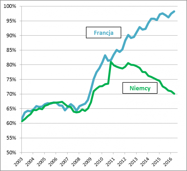 Rys. 4. Dług publiczny/PKB: Niemcy i Francja