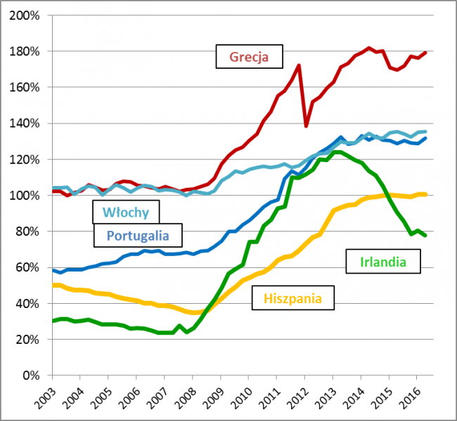 Rys. 5. Dług publiczny/PKB: kraje PIIGS