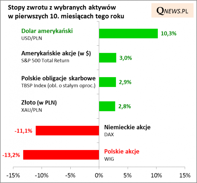 Swoisty "amerykocentryzm" na rynkach w tym roku widać jeszcze dobitniej, jeśli na wyniki w pierwszych dziesięciu miesiącach tego roku spojrzymy z punktu widzenia polskiego inwestora.
