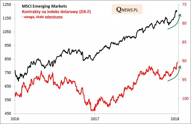 • osłabianie się dolara względem koszyka walut to raczej dobra wiadomość dla surowców oraz akcji na rynkach wschodzących.