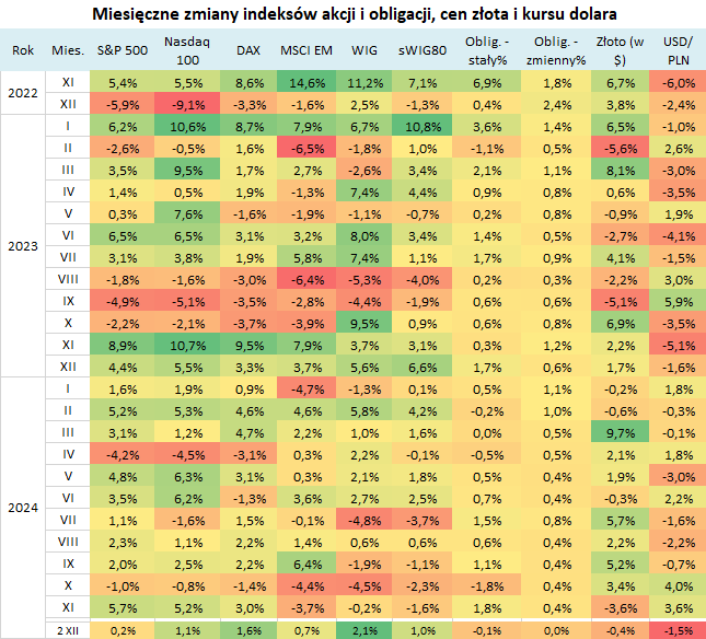 Listopad za nami, czas odświeżyć naszą tabelę zawierającą miesięczne zmiany wybranych indeksów.