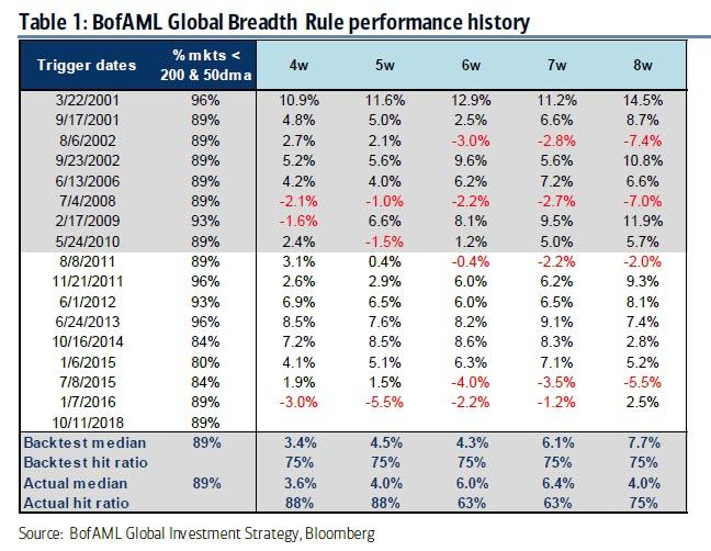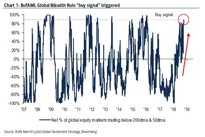 Do podobnych wniosków, choć na podstawie zupełnie innych obserwacji, doszli analitycy Bank of America/Merrill Lynch. Zauważyli, że globalna przecena objęła już w dużym stopniu większość rynków. Ok. 90% rynków (indeksów) znalazło się poniżej 200- i 50-sesyjnych średnich kroczących. Poprzednio z taką sytuacją mieliśmy do czynienia na początku 2016 roku.