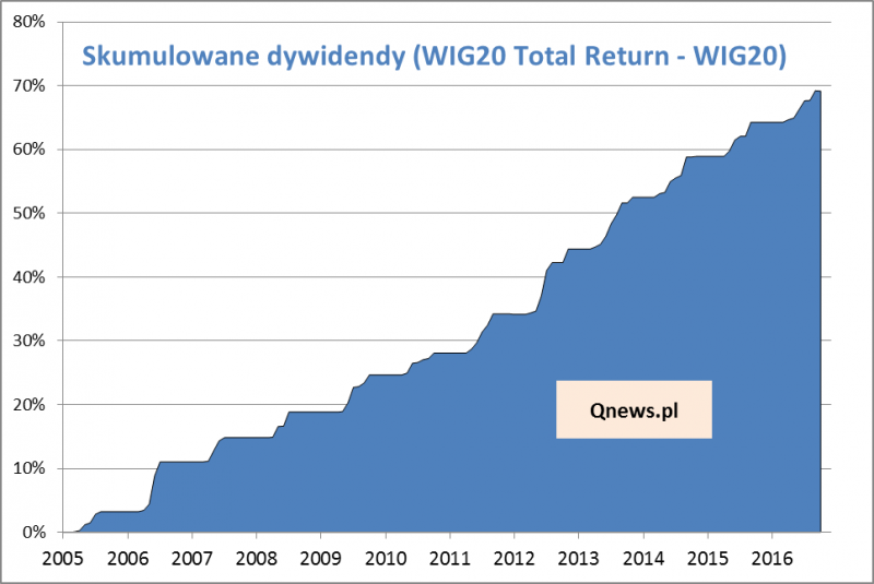 Celem tego porównania jest nie tyle desperacka próba "obrony" WIG20 przed krytyką (bo mechanizmy rewizji jego składu, jak i dominującą pozycję spółek kontrolowanych przez państwo krytykowaliśmy wielokrotnie my sami), lecz raczej pokazanie, że na dłuższą metę w inwestowaniu dywidendy mają ogromne znaczenie. A przecież "zwykła" wersja WIG20 ten aspekt zupełnie pomija.