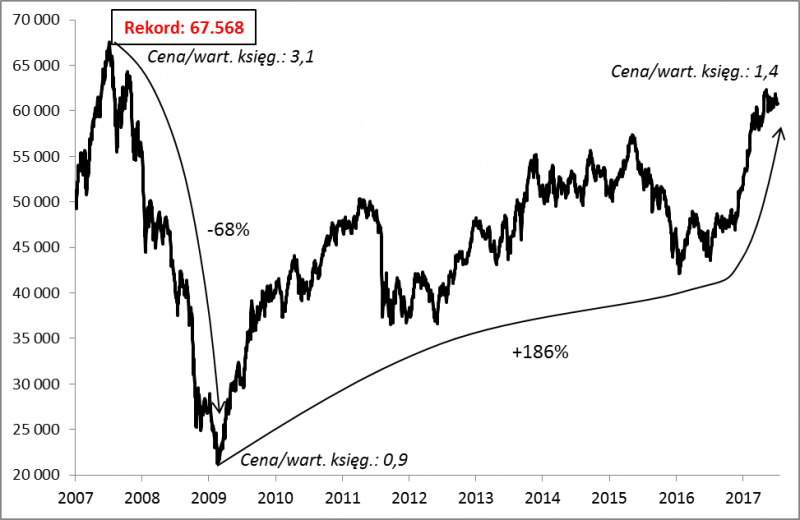 W lipcu 2007 WIG ustanowił niepokonany do tej pory historyczny rekord. Przez ten długi czas wyceny polskich akcji stały się dużo rozsądniejsze, gospodarka urosła o ponad 1/3 w ujęciu realnym. Ale są też negatywne tendencje.