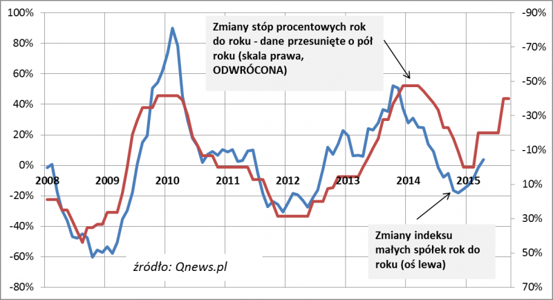 Niezależnie od tych rozważań dotyczących przyszłości polityki monetarnej RPP, warto zaktualizować wnioski dotyczące dotychczasowych zmian stóp, które - jak wynika z naszych obserwacji - z pewnym opóźnieniem oddziałują na koniunkturę na GPW.