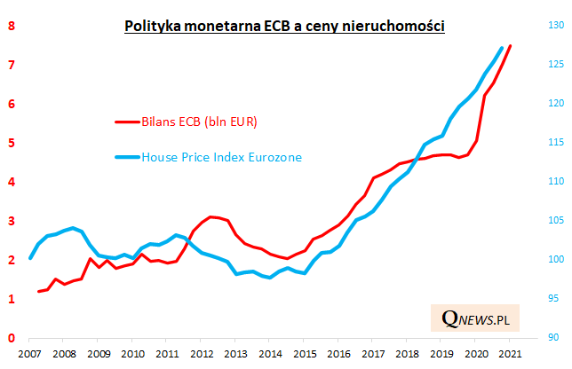 Z czystym sumieniem można założyć, że QE w połączeniu z ultra niskimi stopami procentowymi ma wpływ na dalszy wzrost cen nieruchomości w strefie euro (i pośrednio w całej UE).