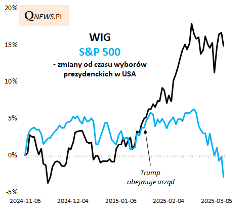 Jednym z najciekawszych aspektów obecnej, coraz bardziej komplikującej się sytuacji na rynkach, jest to, że od czasu styczniowej inauguracji prezydenta Trumpa polskie akcje radzą sobie o wiele lepiej niż amerykańskie, które to poddały się od dawna wyczekiwanej korekcie. Indeks S&P 500 znalazł się nie tylko poniżej poziomu z objęcia fotela przez republikanina, ale nawet poniżej poziomu, z którego wystartowała pamiętna powyborcza euforia w listopadzie, kiedy to cieszono się z domniemanych korzyści z nadchodzących rządów Trumpa. Tymczasem nasz rodzimy WIG jest wyraźnie powyżej wartości z tego okresu.