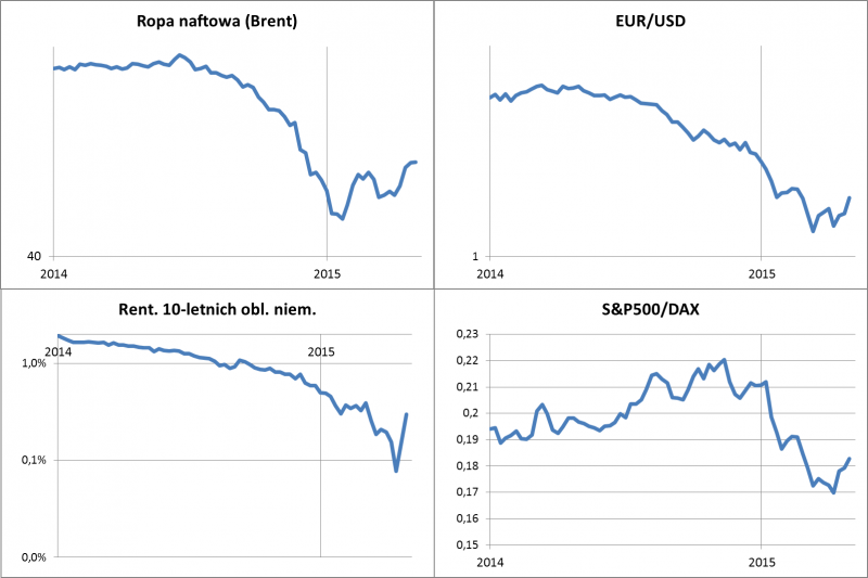 Na tej podstawie można wysnuć taką konkluzję: jeśli ropa naftowa (i szerzej - surowce) będzie dalej drożała (oby nie!), wywoła to wzrost wskaźników inflacji, co z kolei mogłoby doprowadzić do wzmożonych spekulacji na temat ograniczenia QE, a to z kolei sprzyjałoby dalszemu umocnieniu euro. Wówczas EBC byłby zadowolony ze swojej walki z deflacją, a w USA eksporterzy odetchnęliby z ulgą dzięki zahamowaniu umocnienia dolara... Oczywiście nie da się wykluczyć, że ostatnie odbicie na rynku ropy to jedynie tymczasowa korekta - tutaj trudno o trafne przewidywania.