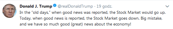 - Przecena na Wall Street to "duży błąd", bo "przecież mamy tyle dobrych (świetnych) wieści z gospodarki" - prezydent USA Donald Trump