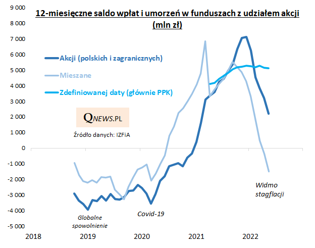 Dobrą wiadomością jest natomiast fakt, że częściowo przeciwwagą dla exodusu kapitałów są stabilne napływy do funduszy tzw. zdefiniowanej daty, na które składa się głównie program PPK (Pracownicze Plany Kapitałowe).