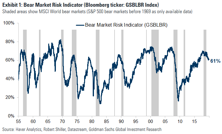 We wrześniu 2018 pisaliśmy o wskaźniku prawdopodobieństwa bessy obliczanym przez Goldman Sachs, który wystrzelił wówczas do wysokich poziomów (75%). W ostatnich dniach bank zaktualizował obliczenia związane z tym wskaźnikiem - to dobra okazja, by na nowo mu się przyjrzeć.