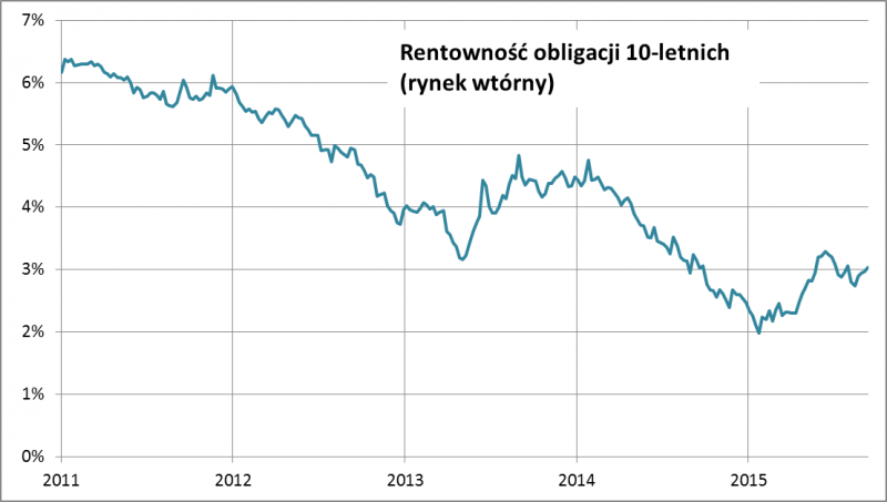 Teraz jednak, wbrew temu, że tak dużo mówi się o spowolnieniu gospodarczym w Chinach i groźbie jego rozprzestrzenienia się na inne regiony, żądana przez inwestorów rentowność jest w trendzie zwyżkowym. Niedawny spadek okazał się przejściowy, a w ostatnich dniach rentowność powróciła powyżej granicy 3%. Wydaje się to spójne z tym, co pisaliśmy na temat oczekiwań rynkowych na temat tempa wzrostu gospodarczego w naszym kraju.