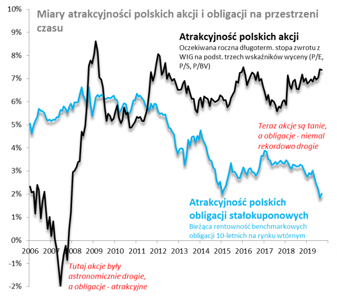 Od początku swego istnienia (2006 rok) koszyk polskich obligacji stałokuponowych wygrał pod względem stóp zwrotu z polskimi akcjami. Tyle tylko, że obecna rentowność obligacji jest niemal rekordowo niska, więc historyczne stopy zwrotu nie są dobrą wskazówką. Pokazujemy alternatywne podejście do budowy portfela.