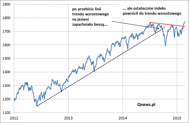 Nowy szczyt jest niewątpliwie korzystnym rozstrzygnięciem z punktu widzenia analizy technicznej. Jesienne przebicie linii trendu wzrostowego sięgającej 2012 roku mogło robić bardzo złe wrażenie. Wraz z zakończeniem korekty tamte negatywne sygnały odchodzą do przeszłości.