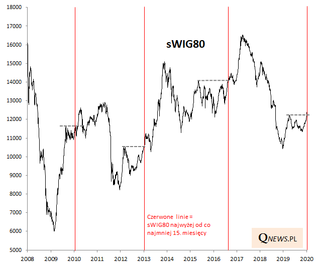 Po okresie prawdziwej zapaści z lat 2017-18 miniony rok przyniósł pierwsze sygnały ożywienia na rynku akcji małych spółek na GPW. Na początku 2020 roku ten trend jest kontynuowany. Indeks sWIG80 w ostatnich dniach pokonał ubiegłoroczne, kwietniowe maksimum i tym samym znalazł się najwyżej od ponad 15. (i prawie 16.) miesięcy. To zdecydowana odmiana na tle poprzednich kilku lat.