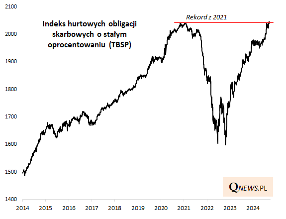 Wreszcie! Po ponad 3,5 roku indeks TBSP, gromadzący krajowe obligacje skarbowe o stałym oprocentowaniu i zerokuponowe, w końcu zdołał pokonać dotychczasowy historyczny rekord ze stycznia 2021.