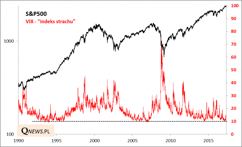 - "indeks strachu" VIX jest na poziomach należących do najniższych w całej swej historii