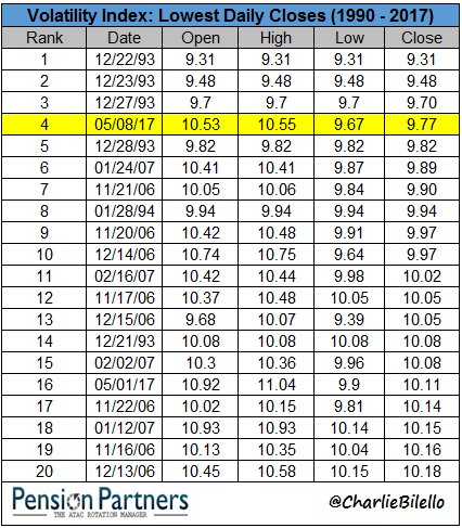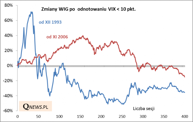 Jedynym innym okresem, w którym pojawiły się wartości VIX-a poniżej 10 pkt. (na zamknięciach), był XI 2006 - I 2007.