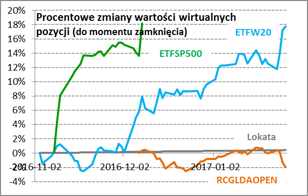 Wyskok VIX-a tuż przed wyborami w USA był dla nas okazją do zbudowania niewielkiej pozycji w instrumentach dających ekspozycję na amerykański S&P500. Tej bardzo intratnej pozycji już od pewnego czasu nie mamy i teraz nasz istniejący od niespełna trzech miesięcy Wirtualny Portfel jest w fazie oczekiwania na okazje. Jedną z nich mogłaby być korekta w USA połączona z odpowiednim wystrzałem indeksu strachu. Z zainteresowaniem patrzymy też na rynek polskich obligacji, wyczekując dalszego wzrostu rentowności.