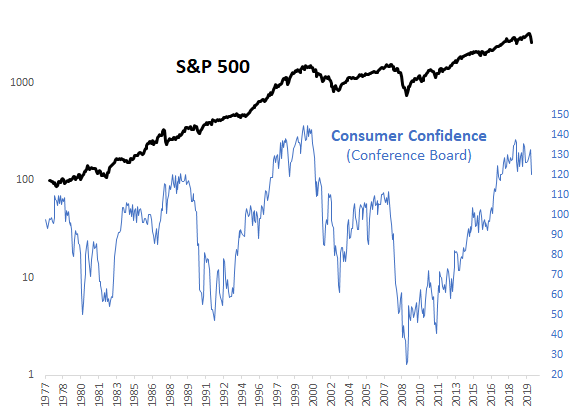 Stopień zaawansowania przeceny niektórzy analitycy oceniają też przez pryzmat mającego wielodekadową historię wskaźnika nastrojów amerykańskich konsumentów. Zasada jest prosta - kiedy konsumenci byli w złych humorach, świadczyło to, że złe wiadomości są już zdyskontowane w cenach akcji.