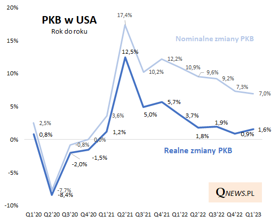 Kolejna dobra wiadomość jest taka, że poziom realnego PKB w I kw. osiągnął nowy rekord (ponad 20,2 bln USD).
