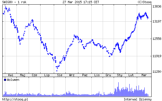 W przypadku bardzo nas interesującego w br. sWIG80, korekta trwa cały marzec. Jej przebieg jest spokojny, choć na poszczególnych walorach zróżnicowany – niektóre, jak Altus, Stalexport pozostają w pobliżu szczytów. Inne, jak Action, MCI dość wyraźnie skorygowały się.