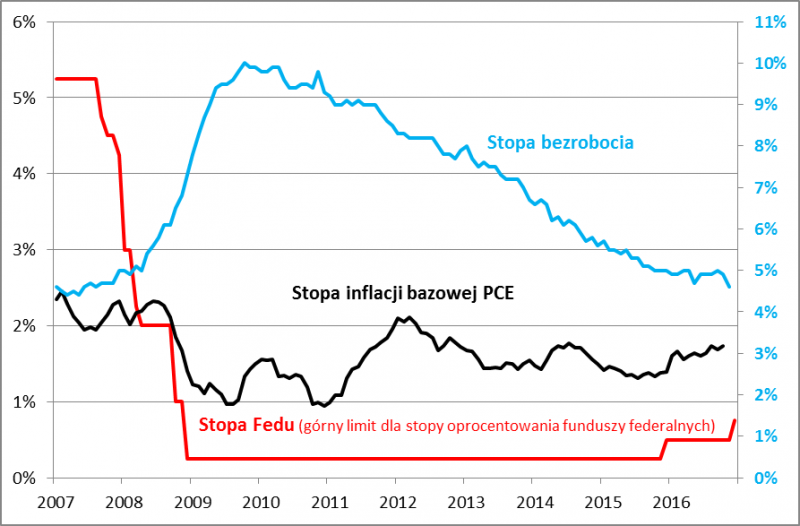 Warto pamiętać, że zgodnie z prawem Fed ma nie tylko dbać o niską inflację, ale też o tzw. pełne zatrudnienie. Inflacja rośnie, a bezrobocie jest niskie, więc podwyżka stóp nie powinna dziwić.