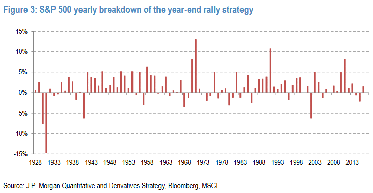 Gdyby taki stan rzeczy udało się utrzymać do końca grudnia, bieżący rok przeszedłby do historii jako jeden z najlepszych z punktu widzenia systematyczności hossy, rozumianej jako konsekwentna wspinaczka indeksów bez większych korekt po drodze. Zdaniem ekspertów banku J.P. Morgan jest duża szansa na "dociągnięcie" dobrej koniunktury do końca roku. Wyliczyli, że historycznie okres od Święta Dziękczynienia w USA (które w tym roku wypada dziś) do końca grudnia był udany dla światowych rynków akcji w 70-80% przypadków. Najpoważniejszym wyjątkiem od tej normy był okres Wielkiego Kryzysu z przełomu lat 20/30 XX wieku.