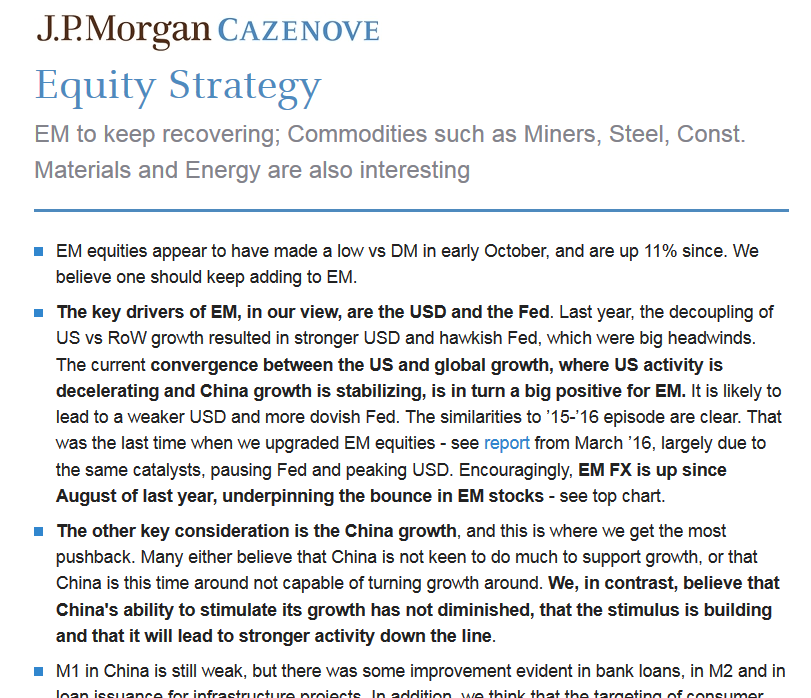 JPM w najnowszym raporcie radzi nie tylko trzymać akcje z EM, ale nawet je ciągle dodawać. Spodziewa się dobrego roku. Dlaczego? Oto tok rozumowania: