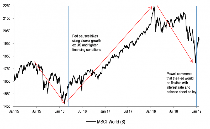 • Schłodzenie w USA już doprowadziło do złagodzenia retoryki FED. Zdaniem JPM dolar ma się osłabiać. Stratedzy chwalą się, że dokładnie te same powody skłoniły ich do trafnego pozytywnego nastawienia do rynków wschodzących w marcu 2016 roku.