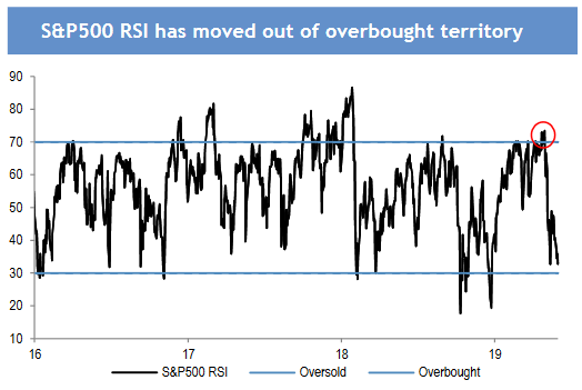 W najnowszym comiesięcznym raporcie stratedzy J.P. Morgan dokonują przeglądu sytuacji na rynkach po majowej wyprzedaży. Zwracają uwagę, że amerykańskie akcje ze strefy wykupienia zeszły w pobliże strefy wyprzedania.