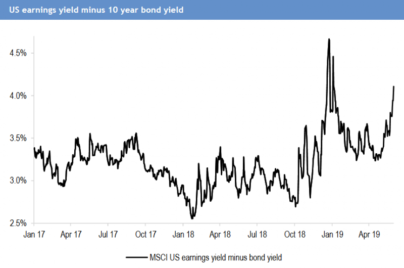Silne ruchy na obu rynkach sprawiły, że wyceny akcji stały się bardziej atrakcyjne, a obligacji - mniej. Różnica między tzw. earnings yield dla akcji (odwrotność wskaźnika P/E, cena/zysk) a rentownościami obligacji w USA powiększyła się powyżej 4 pkt. proc. - do poziomów niewidzianych od grudnia ub.r.