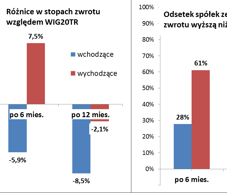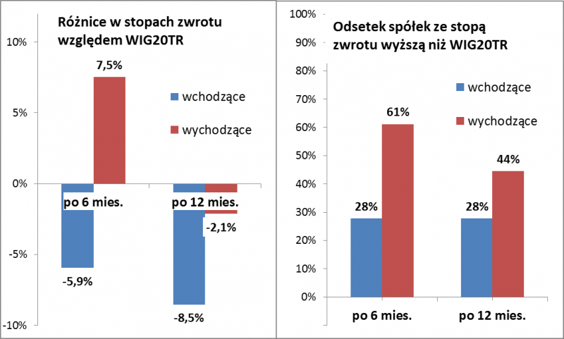 Badanie objęło zmiany składu WIG20 począwszy od marca 2009. W tym czasie rewizje objęły 36 spółek wchodzących/wychodzących.
