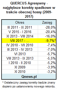 Optymista zapewne powie, że skoro mamy czwartą najsilniejszą korektę, która na dodatek trwa już de facto od maja 2017 (przy czym pod koniec sierpnia jednostka była znów o krok od rekordu), to jest to argument za rozpoczęciem zakupów. Pesymista zaś będzie czekał na dużo lepszą okazję. A może najtrafniejsze podejście jak zwykle okaże się swoistym kompromisem między tymi skrajnymi punktami widzenia?