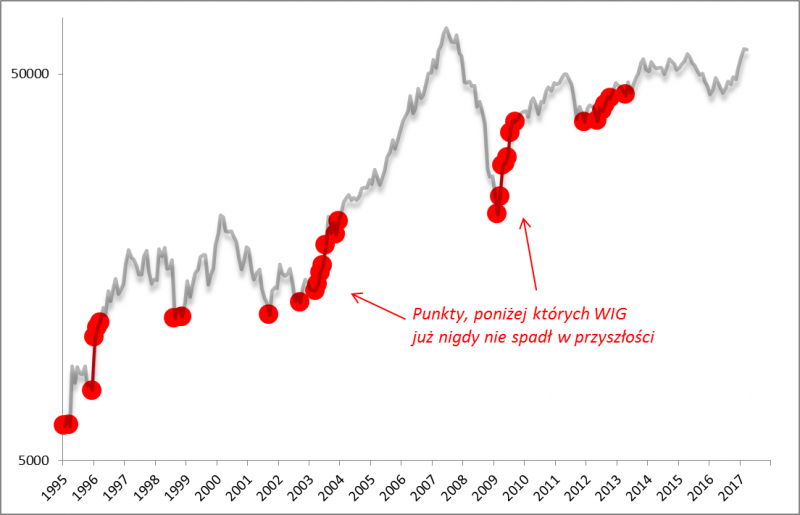 Rys. 1. Kiedy kupno akcji gwarantowało, że WIG już nigdy* nie spadnie niżej?