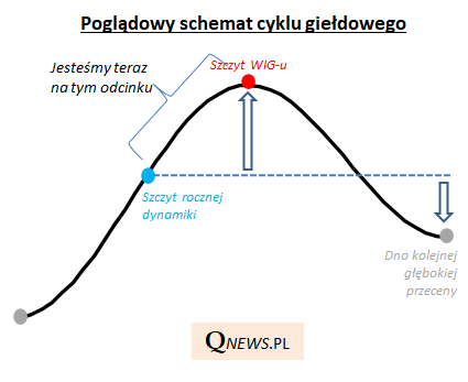 Reasumując, szczyt rocznej dynamiki WIG-u jest już za nami i należy to uznać za kolejny kamień milowy na drodze pomiędzy dnem dużej przeceny, a definitywną górką WIG-u przed następną większą przeceną. Trzymajmy kciuki, by krajowy indeks zdołał jeszcze z siebie wykrzesać dalszy potencjał w ramach obecnej fazy cyklu giełdowego.