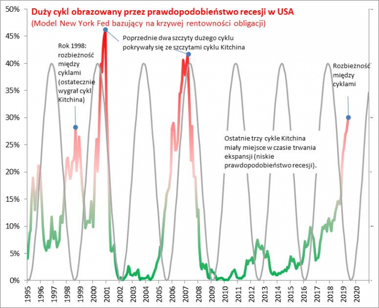 Rys. 2. Duży cykl studzi zapał i wprowadza spore zamieszanie, bo prawdopodobieństwo recesji wystrzeliło w górę