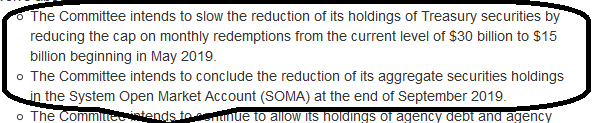 Załamanie na rynkach w IV kw. ub.r., wysyp słabszych danych makro i zapewne też presja polityczna (rosnący deficyt budżetowy w USA wymaga coraz większego popytu na obligacje) - wszystko to skłoniło Fed do błyskawicznej zmiany frontu. O ile jeszcze na przełomie roku decydenci tylko wspominali o możliwości szybszego zakończenia QT, to teraz mamy już konkretną deklarację, że od maja Fed zacznie wygaszać QT (czyli na nowo rolować coraz większe porcje obligacji). A po wrześniu QT już w ogóle nie będzie, czyli bank będzie rolował wszystkie obligacje skarbowe (a wpływy z wykupu papierów hipotecznych zamieniać na "skarbówki").