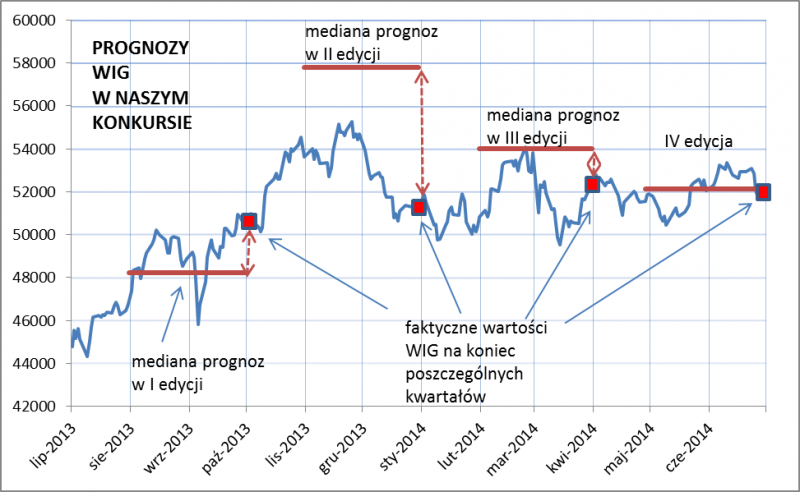 Jak widać, jak na razie nasz konkurs dobrze sprawdził się jako barometr nastrojów szczególnie w IV kw. 2013. Bardzo optymistyczne prognozy uczestników towarzyszyły kształtowaniu się szczytu na giełdzie. Co ciekawe natomiast w ostatniej edycji większość uczestników miała rację, obstawiając brak większych zmian notowań. Jak będzie tym razem? Trudno powiedzieć, ale jedno jest pewne – im więcej naszych Czytelników odda głos, tym bardziej wiarygodne będą wskazania barometru.