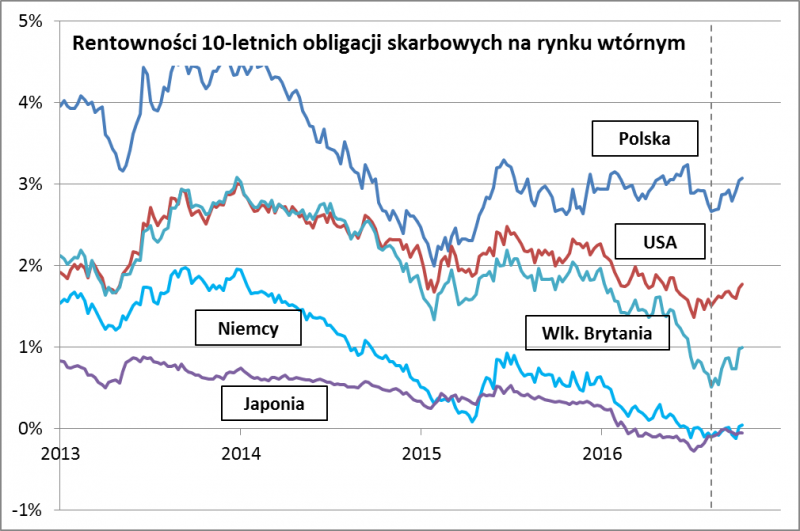 Oczywiście nie da się wykluczyć, że mamy do czynienia jedynie z przejściowym odreagowaniem, a nie początkiem większego ruchu na rynkach obligacji. Niemniej widać, że po latach spadku rentowności znalazły się już na tak niskich pułapach, że o dalszy spadek coraz trudniej, zaś o podwyższoną zmienność coraz łatwiej.