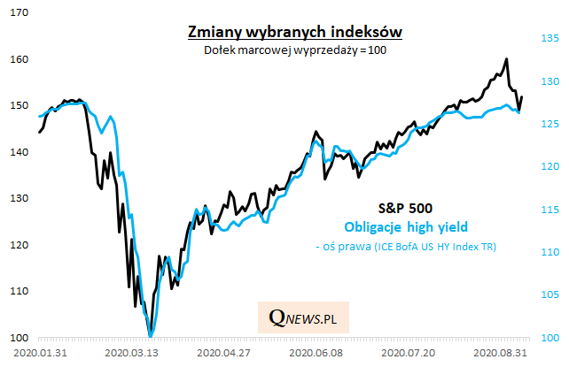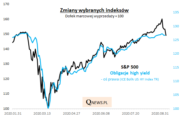 Z naszych obserwacji wynika, że w szczycie S&P 500 wyraźnie oderwał się w górę od więzi łączącej go z blisko spokrewnioną klasą aktywą - obligacjami korporacyjnymi o podwyższonym ryzyku (high yield). Dzięki korekcie korelacja została przywrócona (inna sprawa, że obligacje w ostatnim czasie utknęły w miejscu).