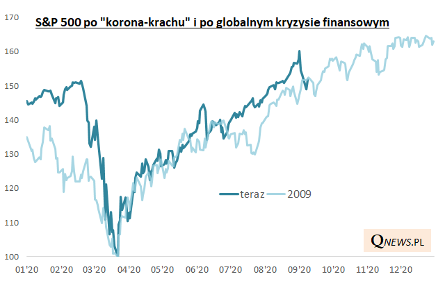 Przed korektą amerykański indeks zachowywał się mocniej niż nawet w trakcie dynamicznej hossy w 2009 roku. Po korekcie jest znów mniej więcej na tej ścieżce (jednocześnie porównanie to pokazuje, że w trakcie zwyżki mogą coraz częściej pojawiać się podobne korekty po drodze).