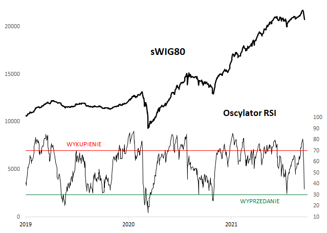 Na krótką metę pocieszające jest, że akcje (np. małych spółek) przeskoczyły błyskawicznie ze stanu tzw. silnego wykupienia w okolice strefy wyprzedania - nieopodal takiego punktu kończyły się niektóre przeceny w przeszłości, np. ta w lipcu.